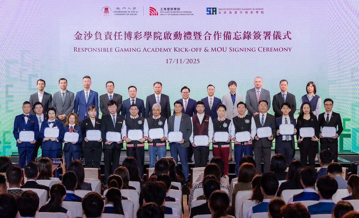 金沙中國於11月17日在澳門倫敦人舉行「金沙負責任博彩學院」啟動儀式,並與澳門大學簽署負責任博彩合作備忘錄。活動現場同時舉行「RG360─澳門負責任博彩專業大使課程」結業禮,為完成課程的學員頒發證書,標誌着雙方在負責任博彩的產學研合作邁向新里程。