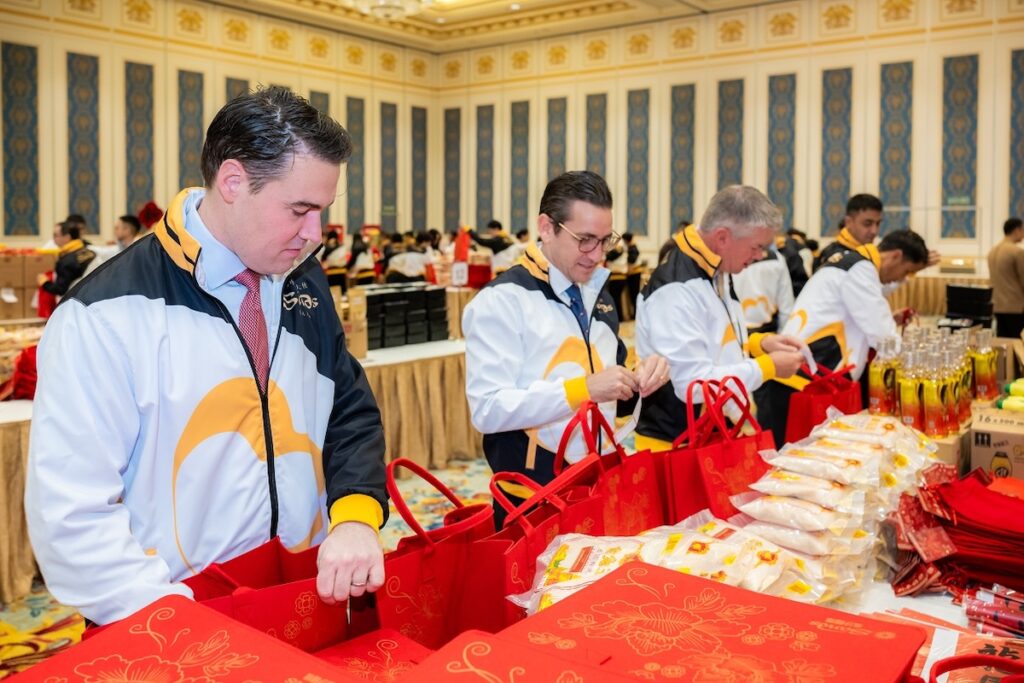 活動期間,Patrick Dumont及管理層亦入鄉隨俗,學習書寫迎春納福的揮春,感受「福」字所承載的吉祥寓意,並以廣東話及普通話向員工與義工送上新春祝福,現場在筆墨與笑聲交織下洋溢節日氣氛。