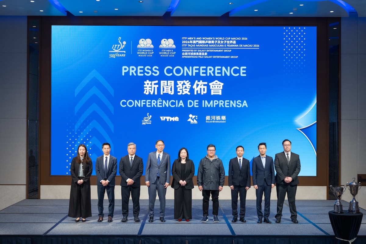 「2026年澳門國際乒聯男子及女子世界盃 — 由銀河娛樂集團呈獻」由國際乒乓球聯合會(ITTF)授權,體育局、銀河娛樂集團及世界乒乓球管理集團有限公司主辦,澳門乒乓總會協辦。