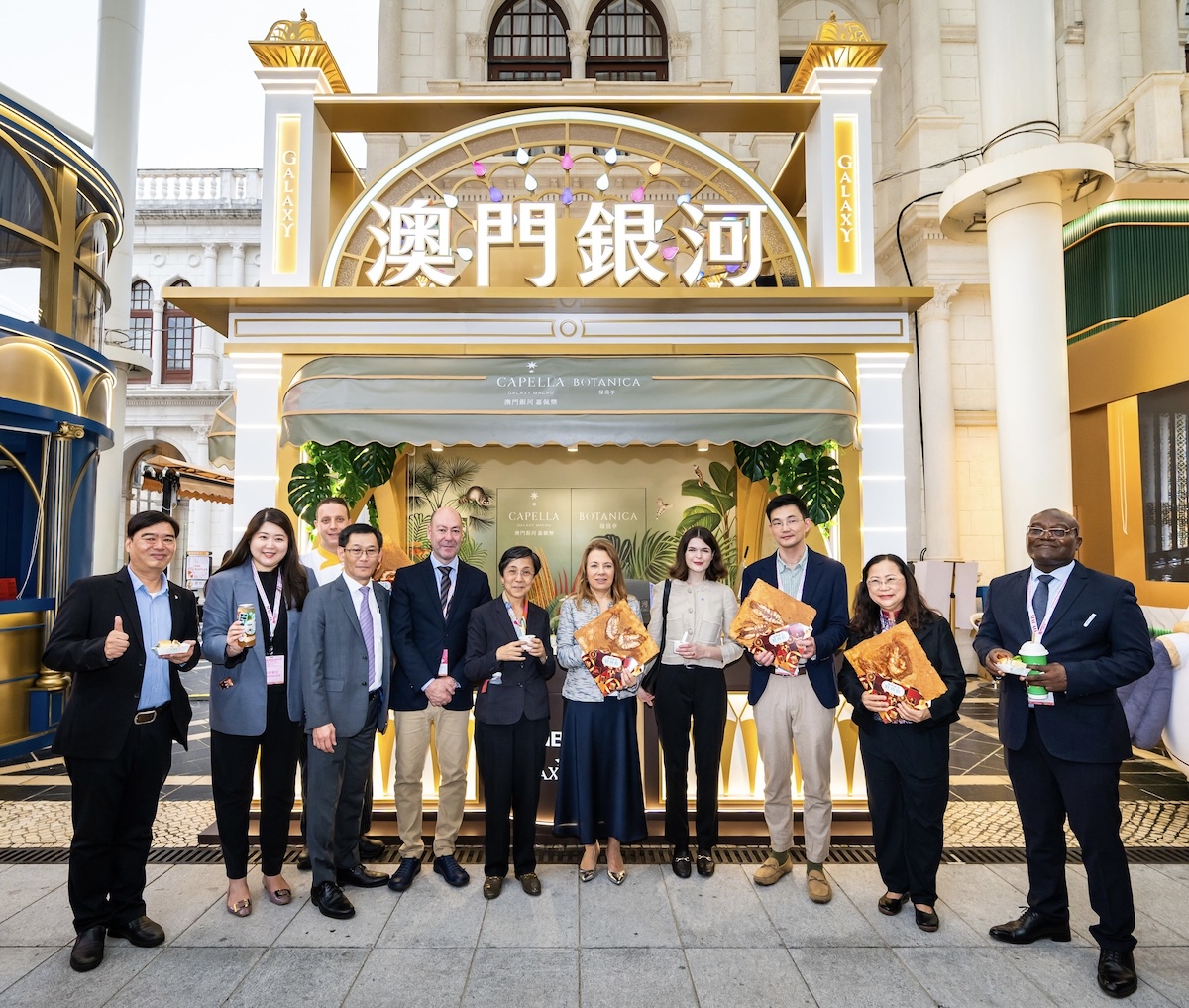 「澳門銀河」在會場設置美食展位,並以澳門銀河 嘉佩樂的「奢金叢林」概念設計亮相。展位主打「綠茵亭」匠心美饌,包括龍蝦包、香蘭雪糕等,同時推出「澳門銀河」人氣打卡小食「福運珍寶大蝦脆片」,以具辨識度的出品吸引旅客駐足。