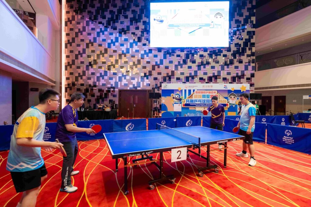 隨後,活動移師至「澳門百老匯」展開一系列精彩紛呈的乒乓球賽事。為了讓不同能力的運動員都能找到屬於自己的舞台,大會精心設計了多個組別。除了讓特奧運動員一展身手的競技組別外,今年最引人注目的創新舉措莫過於首度增設的「照顧者挑戰賽」。