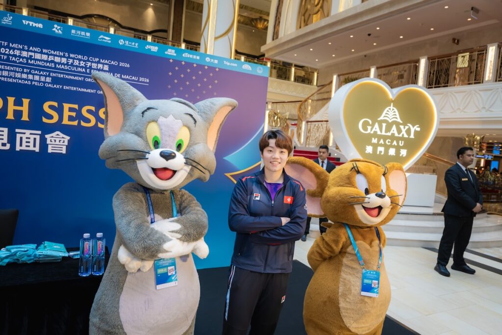 為了慶祝國際乒聯成立100周年,今年賽事特別推出了官方款待體驗產品,為追求高品質觀賽體驗的球迷提供了專屬服務。而在場外,主辦單位亦下足功夫。「澳門銀河」東翼廣場設置了經典卡通「Tom & Jerry」(貓和老鼠)的巨型充氣打卡點,吸引大量家庭旅客及球迷駐足。球星如周啟豪、覃予萱、杜凱琹等的簽名互動環節,更將現場氣氛推向高潮。