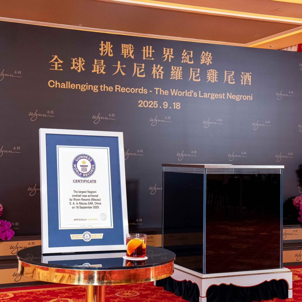 To commemorate this historic occasion, Wynn has bottled this record-breaking Negroni cocktail and will be sharing it with guests throughout September at Wynn Macau, Wynn Palace and Wing Lei Bar. The event also aligns with the charitable initiative “Negroni Week”, launched by Imbibe magazine and Campari, blending classic mixology culture with social responsibility.