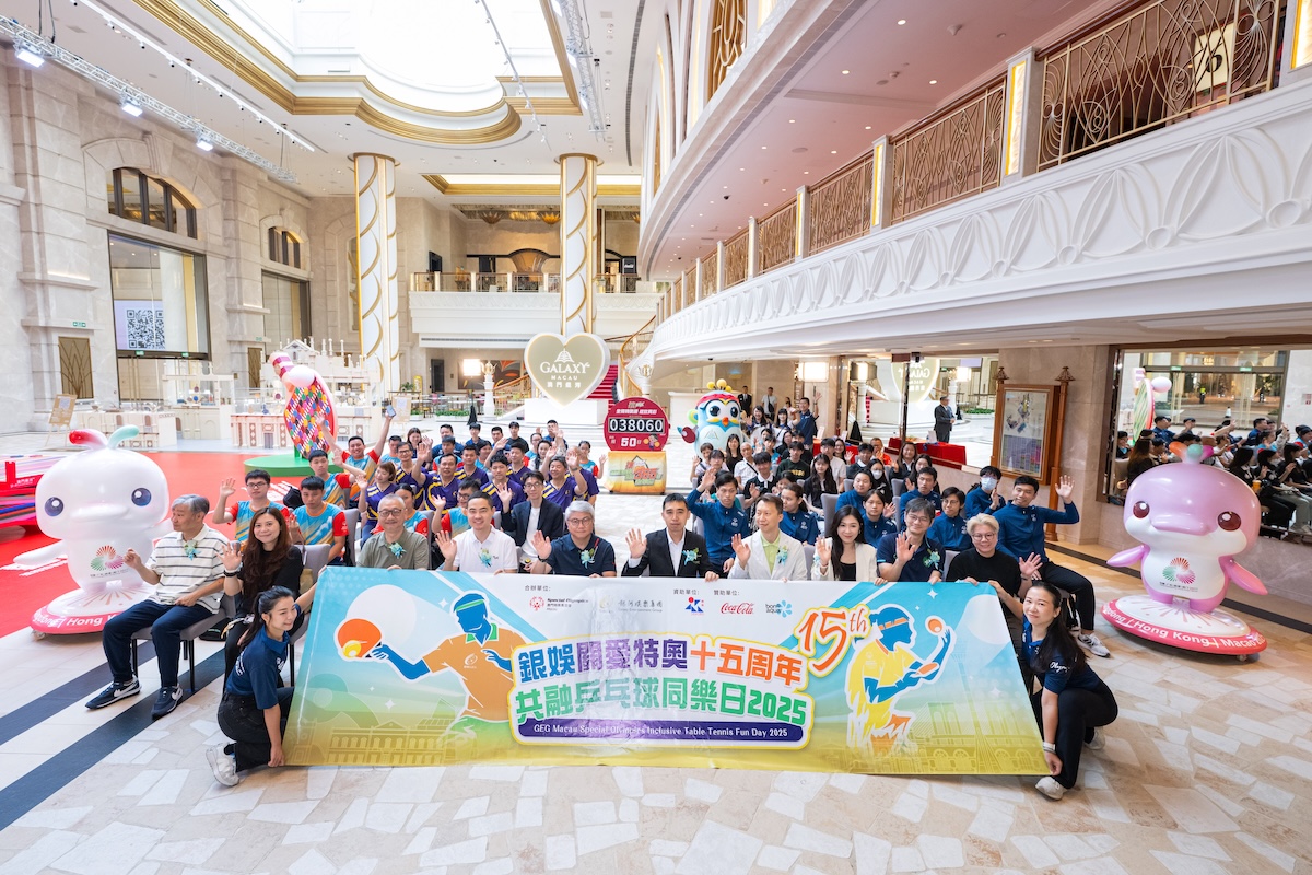 The opening ceremony of the “GEG Macau Special Olympics Inclusive Table Tennis Fun Day 2025” was held at East Square of Galaxy Macau on October 19. That day not only marks the 15th consecutive year of Galaxy Entertainment Group(“GEG”) organized the fun day, but also the 50-day countdown to the 12th National Games for Persons with Disabilities and the 9th National Special Olympic Games. GEG also featured inclusive doubles and elite challenge tournaments, and a game experience zone at Broadway Macau, where over a hundred participants gathered to forge friendships through sport, heralding the upcoming National Games in the Guangdong-Hong Kong-Macao Greater Bay Area.