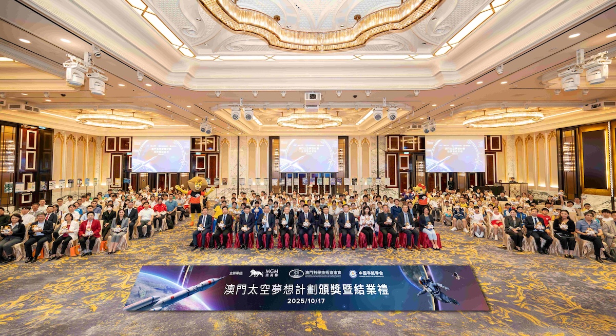 The “Macau Space Dream Project,” jointly organized by MGM, the Association for Promotion of Science and Technology of Macau (MAPST) and the Chinese Society of Astronautics (CSA), held its award ceremony and graduation celebration on 17 October. Over 250 teachers, students and representatives from the science and technology community attended to witness the participants’ achievements.