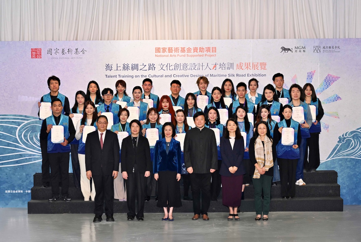Organized by MGM, the 2025 National Arts Fund-supported project, “Talent Training on the Cultural and Creative Design of Maritime Silk Road”, officially opened its achievement exhibition on 5 February at Macau’s Barra District (the former site of the Barra Slaughterhouse). Spanning nearly a year, the project was anchored at the POLY MGM MUSEUM as its study and training base. It brought together a faculty team formed in collaboration with the Palace Museum and Beijing Institute of Fashion Technology (BIFT) and conducted visits to multiple key node cities along the Maritime Silk Road. Through a training model integrating “cultural theory + professional field studies + design practice”, the program has advanced the cultivation of cultural and creative design talent and supported the transformation of outcomes into applicable results.
